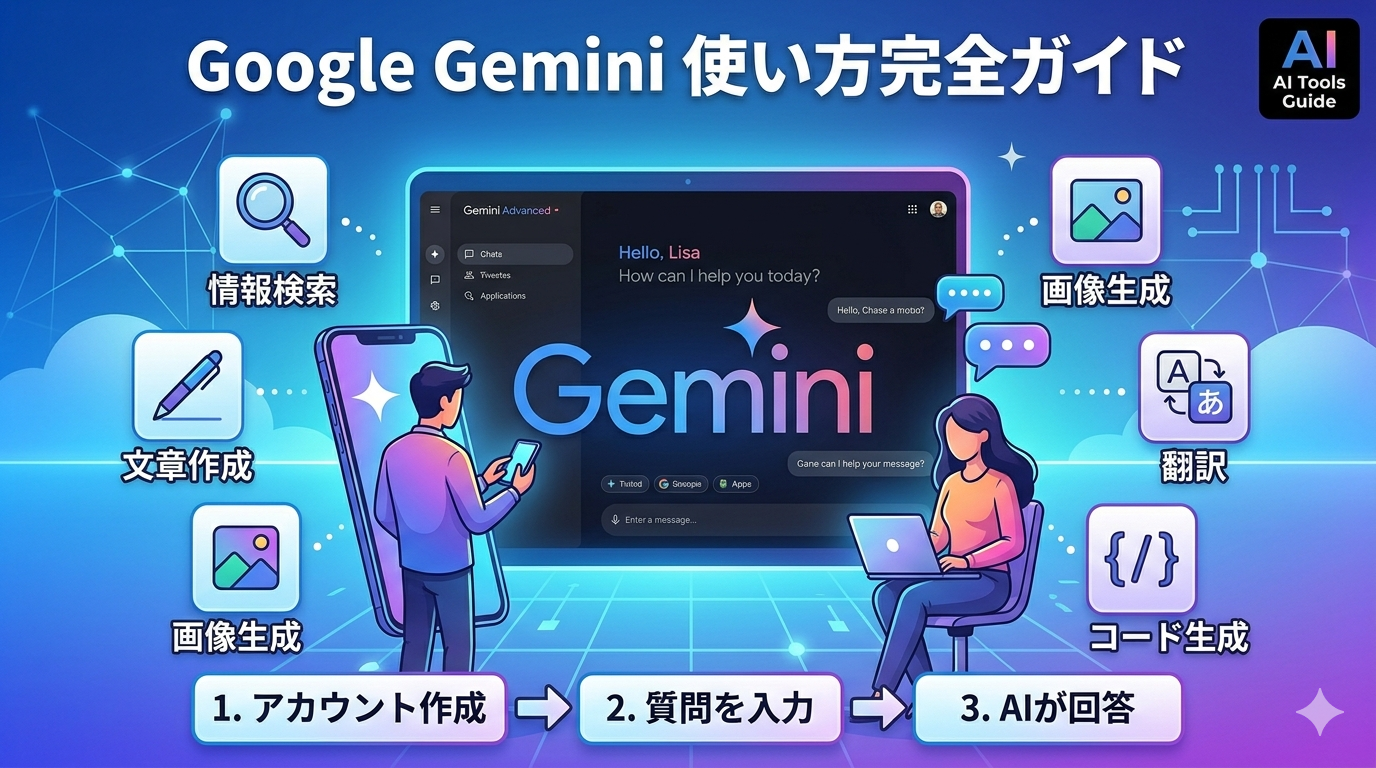 「Geminiって聞いたことあるけど、ChatGPTと何が違うの?」「Googleが作ったAIって、どうやって使うの?」